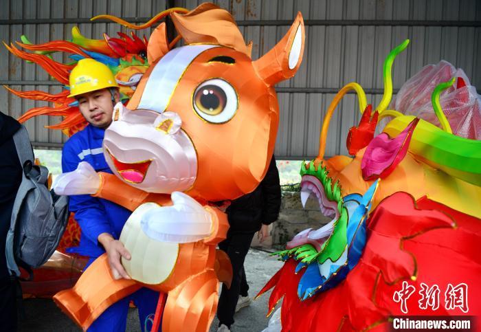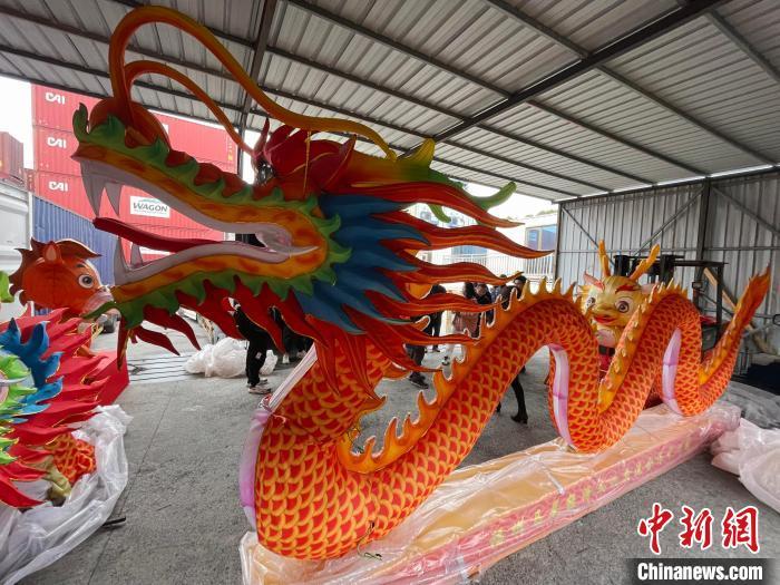 1月15日,第二十二届“两马同春闹元宵”活动福州市马尾区赠送马祖的花灯在平潭装箱。中新网记者张斌摄