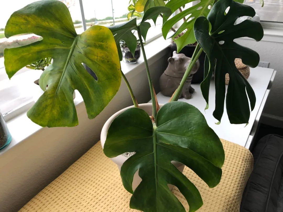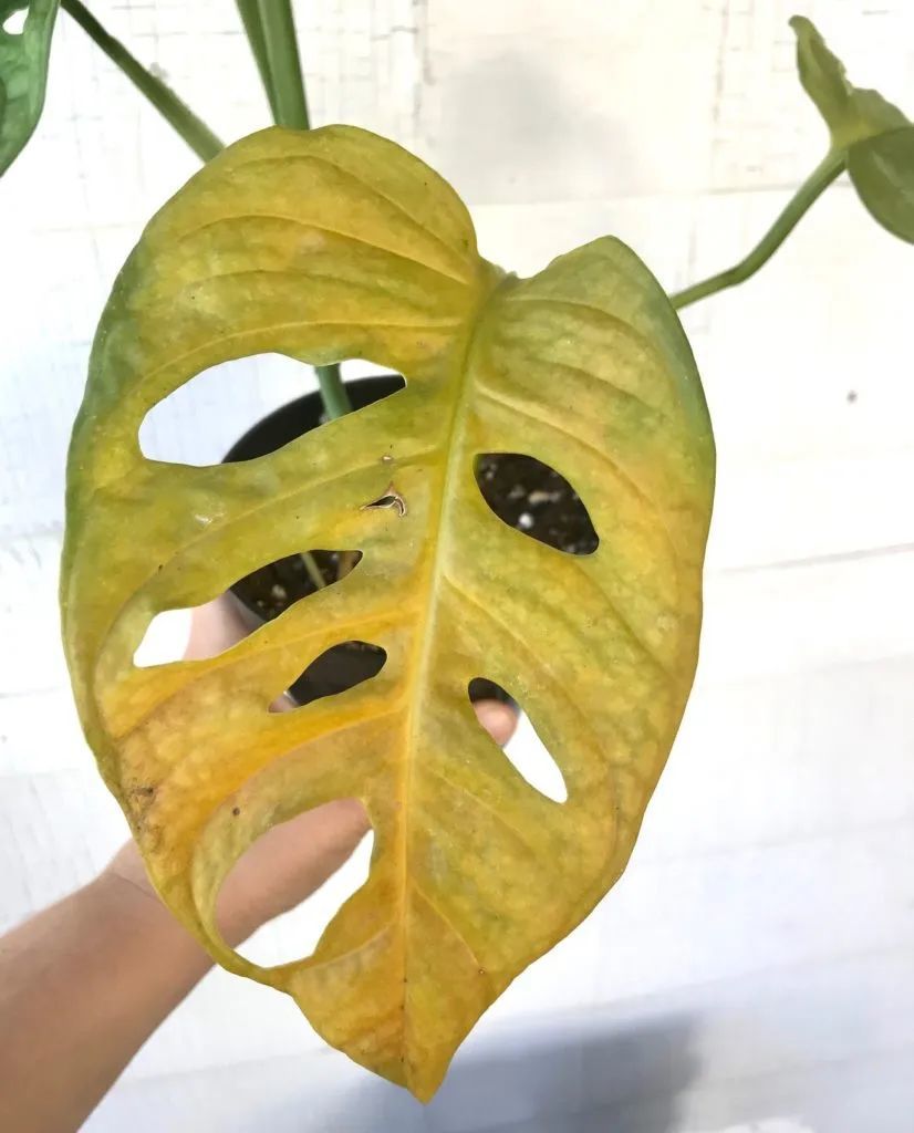 这种情况就是在换盆后出现的,如果在换盆的时候不小心弄伤了龟背竹的根部,移栽后没有给予合适的环境,就会导致叶子发黄。