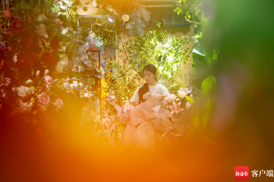 仿真花店店员在忙着插花。记者 刘孙谋 摄