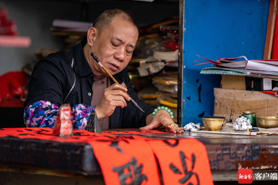 海口博爱南老街上,摊主手写春联。记者 刘孙谋 摄