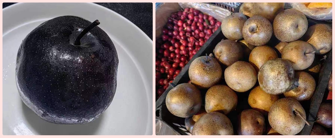 冻梨黑色的外表是很多人不敢轻易尝试的一个主要原因。李琴分析说,冻梨表皮之所以变黑,是因为低温条件下它的细胞组织被破坏,里面所含的多酚类物质在多酚氧化酶(低温状态下活性较高)作用下,经氧化变成深色的酮类物质,所以冻梨就会呈现黑色,这是一种很正常的酶促褐变反应。