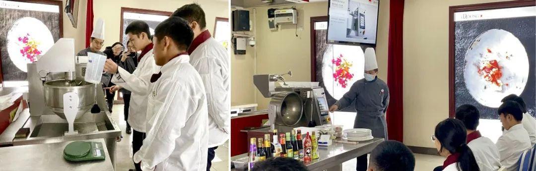 ◎李锦记希望厨师学员正在实操美膳狮AI炒菜机器人