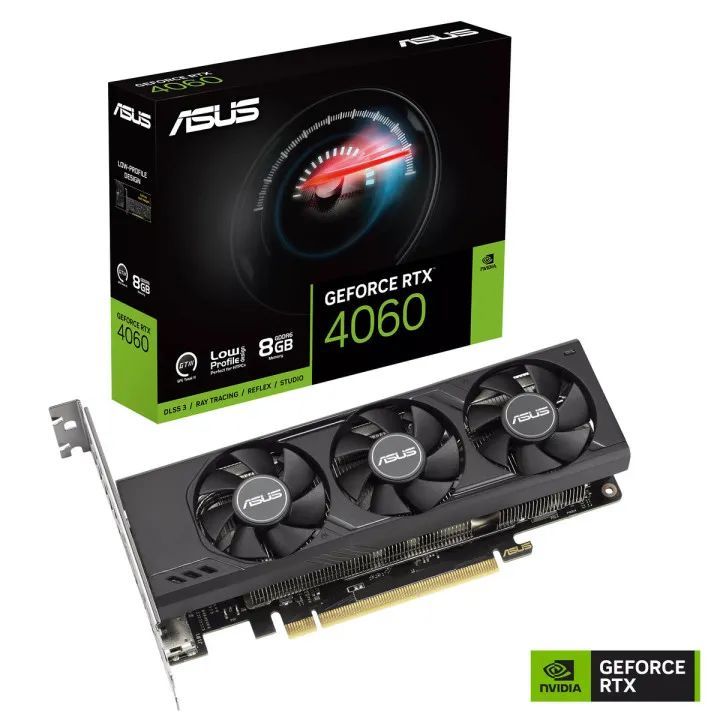 华硕近日推出了一款全新的RTX 4060显卡,采用了对小机箱和紧凑设计相当友好的半高设计,型号为RTX 4060 LP BRK,与技嘉的RTX 4060 OC Low Profile 8G同样为半高双槽三风扇设计,不过尺寸上华硕要稍大一些,来到了188×69×39 mm。