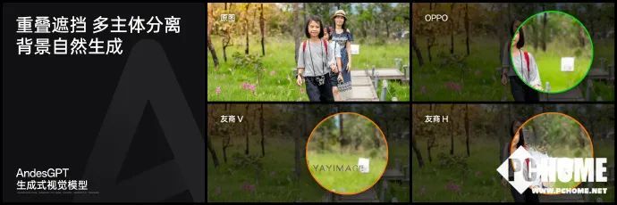 这组对比可以看到对在对人物主体旁的画框消除后,AI补齐了墙壁的细节,无论是图案、纹路,还是色调,补全的部分和周围墙壁融合的非常好,完全看不出来消除过。AIGC消除功能的完成要得益于AndesGPT能对图像进行精准语义理解,实现了对超过120类主体的识别与分割支持,并进行图像延展与生成。