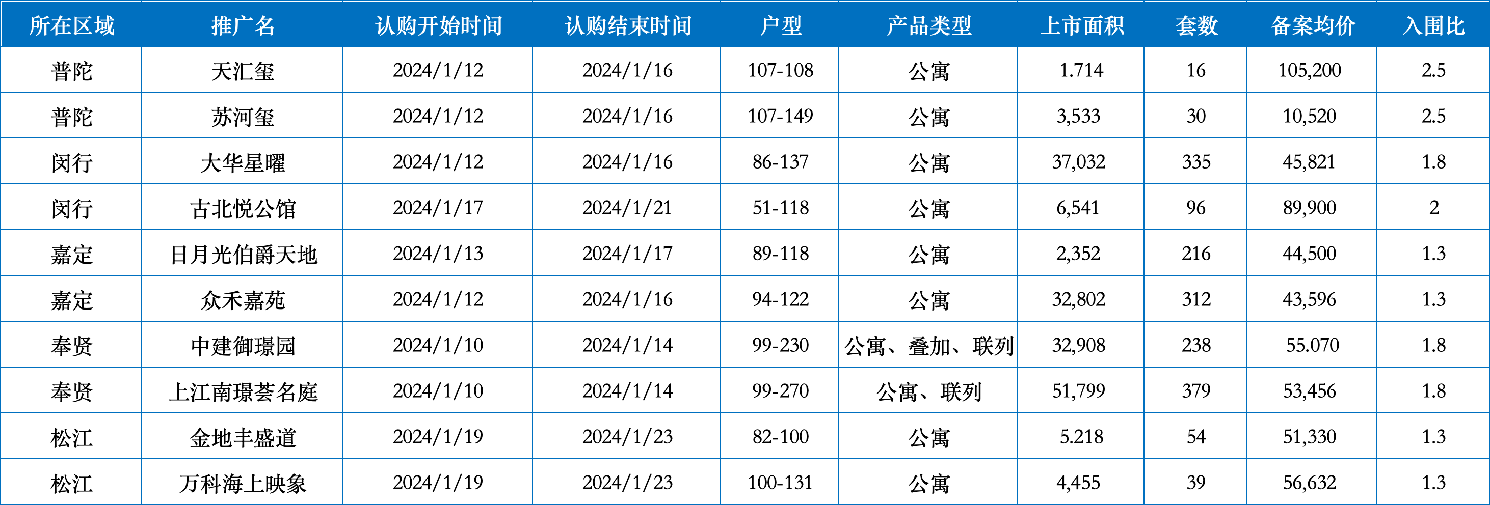 1月17日,上海2024年一批次新盘有2盘官宣取证,分别是金地丰盛道、万科海上映象,均将于1月19日开启认购,截止时间为1月23日。