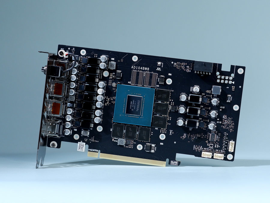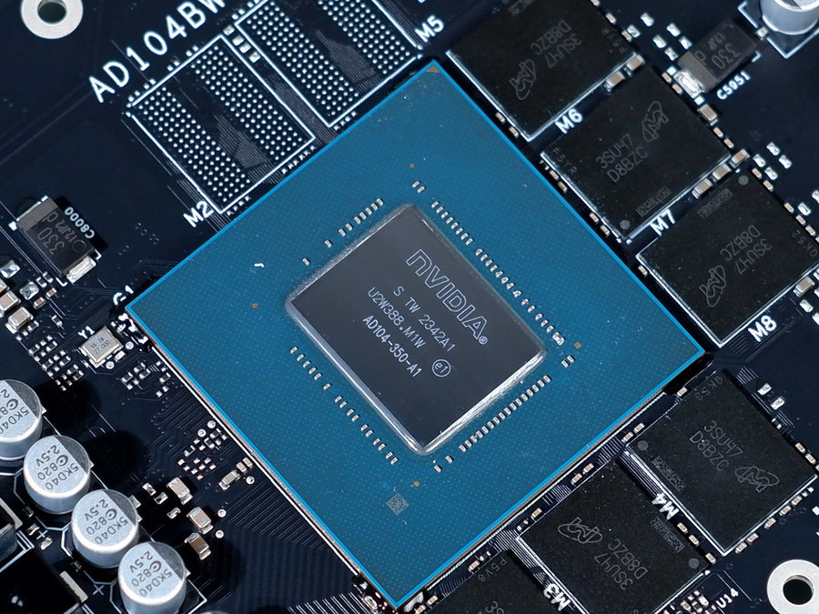 全新的AD104-350显示核心,芯片面积为294.5平方毫米,看上去尺寸比较小。