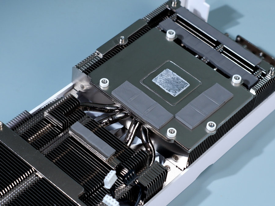 这款散热器的金属主体部分也很大,不仅能够为GPU进行散热,而还能够为显存以及MOS管进行散热。