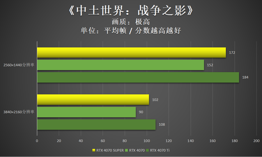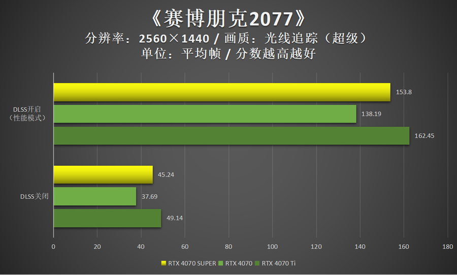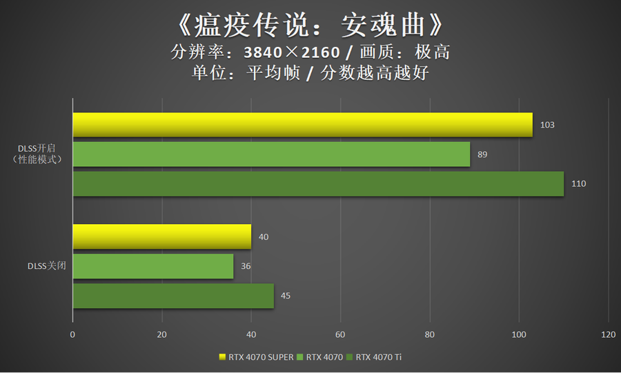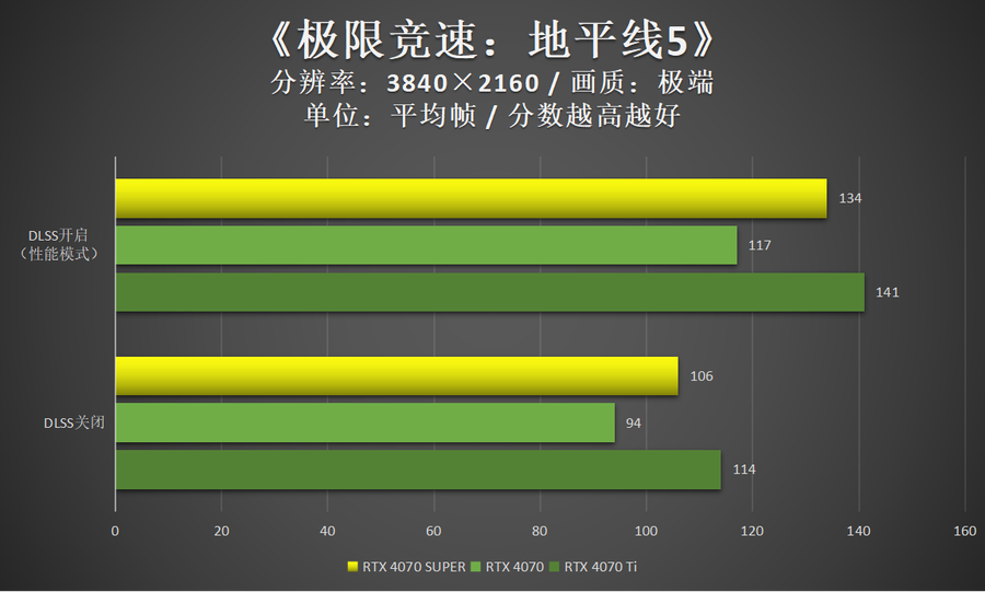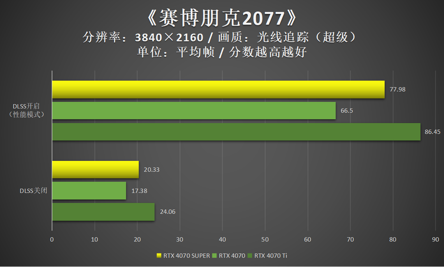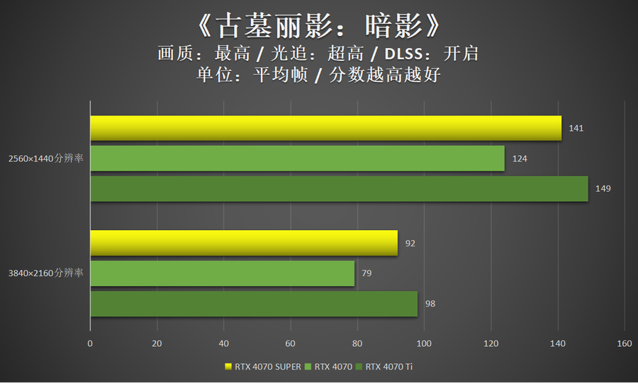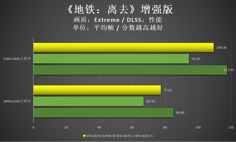 非DLSS 3游戏中,iGame GeForce RTX 4070 SUPER Ultra W OC 12GB的性能表现依然很好,对于2K 144Hz显示器玩家,在很多游戏当中均能够体验到2K 144Hz级别非凡的游戏效果。此外在4K游戏下,大部分游戏平均帧均能够跑到60帧一上,性能已很给力。