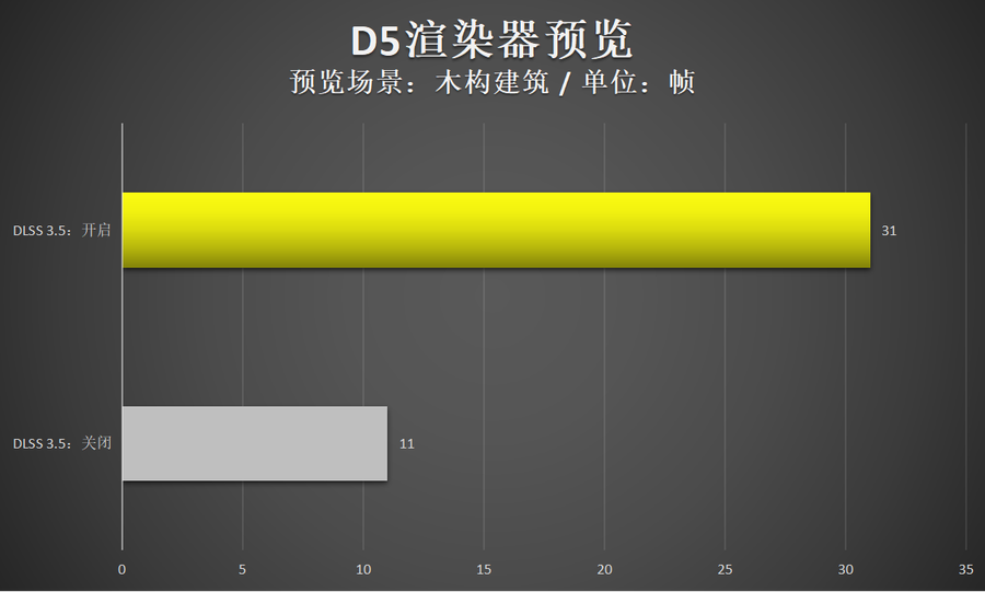 目前国产渲染器——D5渲染器已更新DLSS 3.5预览支持,可以让用户在复杂渲染模型的预览场景中获得更为流畅的使用反馈,为用户提供更高帧率的显示。笔者此次利用iGame GeForce RTX 4070 SUPER Ultra W OC 12GB进行了D5渲染器场景列车中环境非常复杂的《木构建筑》预览体验,并记录开启以及关闭DLSS 3.5进行预览的帧数变化。