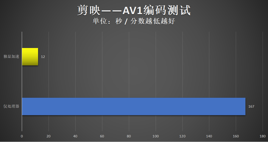 显而易见,在iGame GeForce RTX 4070 SUPER Ultra W OC 12GBRTX 40系列显卡AV1视频编码加速的助力之下,转换时间比单用处理器转换大幅缩短,加速效果相当显著。