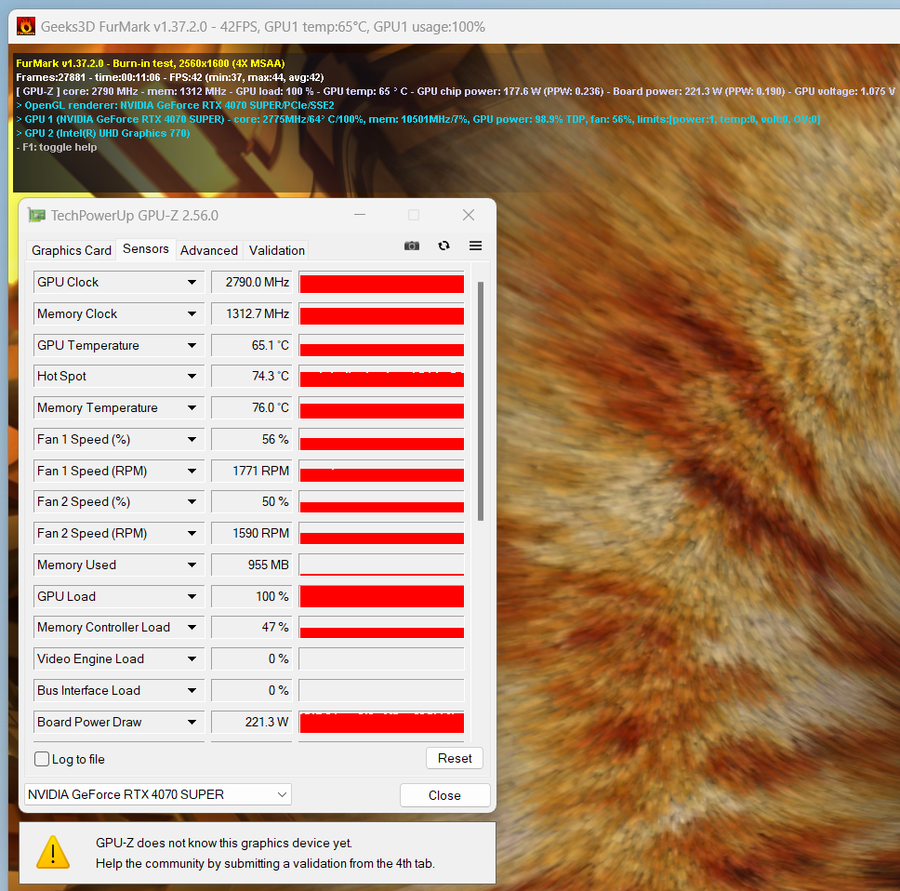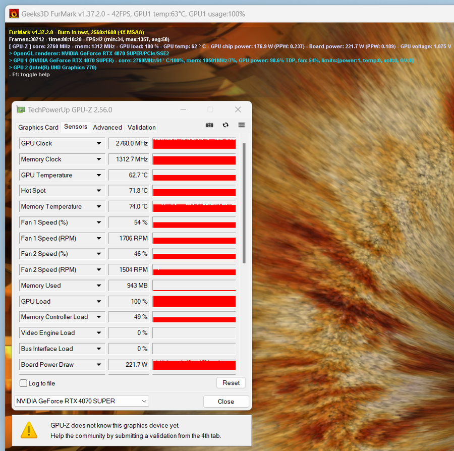 利用FurMark,笔者将对iGame GeForce RTX 4070 SUPER Ultra W OC 12GB显卡进行压力测试。