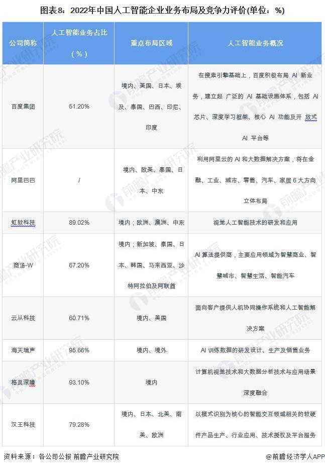 4、中国人工智能行业企业布局及竞争力评价