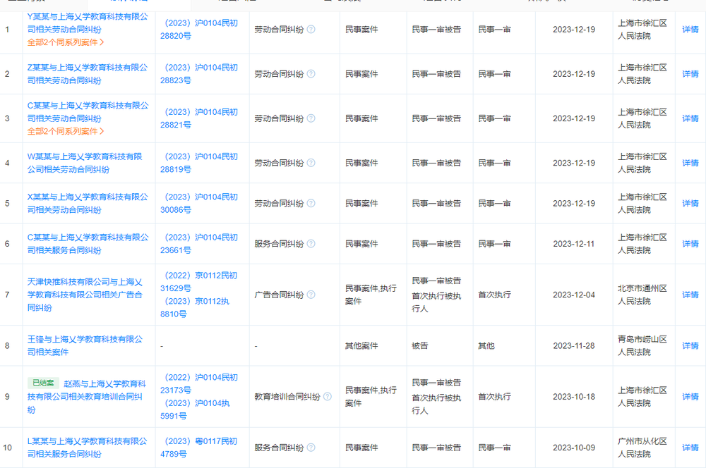 两年多过去,松鼠AI虽偿还不少供应商欠款和被拖欠的员工工资,但目前松鼠AI的债务危机仍未得到妥善解决。天眼查显示,松鼠AI母公司上海乂学教育科技有限公司股权已被冻结。多位高管成为失信被执行人、限制高消费。乂学教育牵扯到的法律诉讼高达999+条,仅2023年这一年就达到166条。