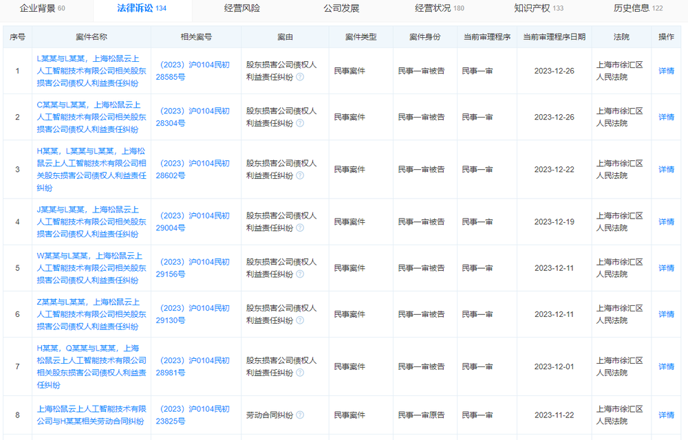 债务压力下,松鼠AI高管也陷入内斗中。其中栗浩洋控股的另一家公司上海松鼠云上人工智能技术有限公司,去年多次股东损害公司债权人利益责任纠纷案件中。