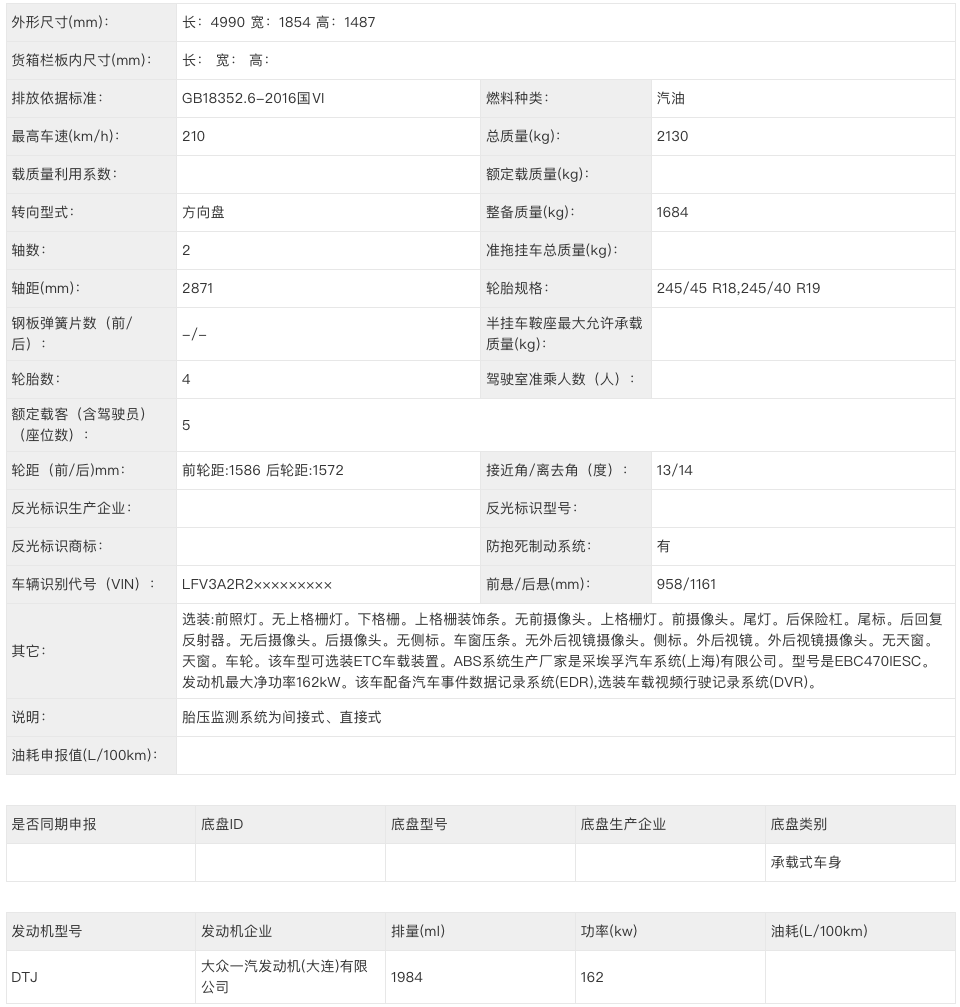 动力方面,新车搭载大众一汽发动机(大连)有限公司所生产型号为DTJ的2.0T发动机,最大功率为162千瓦。作为对比,目前在售的迈腾搭载1.4T发动机和2.0T高/低功率发动机可选。