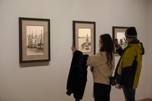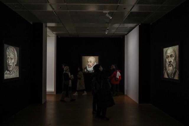 本次展览以“致敬”“蓝调爵士”“山景”及“人物“四个单元呈现了林栋甫创作的80余幅画作,包括为自己的“精神导师”蒙田、先哲苏格拉底与塞内卡以及B·B金、迈尔斯·戴维斯等传奇音乐大师画的肖像画,还有40余幅描绘各地风景和不同人物形象的钢笔素描,展示了林栋甫在法国人文主义思想家米歇尔·德·蒙田潜移默化的影响下,对于精神世界乃至生命的深刻思考与敏锐洞察,而由外向内的创作历程。他虔诚地、甚至战战兢兢地,通过一次次线条笔触的重复堆叠,显化着内心的节奏,表达着返于自心、返于真实的内心截图。这些画作给予观众直击灵魂的视觉冲击力,更让我们见证了他内心的灵魂之旅。