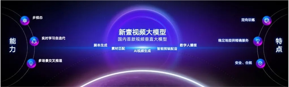 新壹视频大模型于2023年7月27日发布,目前已具备从视频脚本生成、素材匹配原生 AI 视频生成、声音克隆、智能剪辑到数字人播报的全流程 AI 视频生产能力。