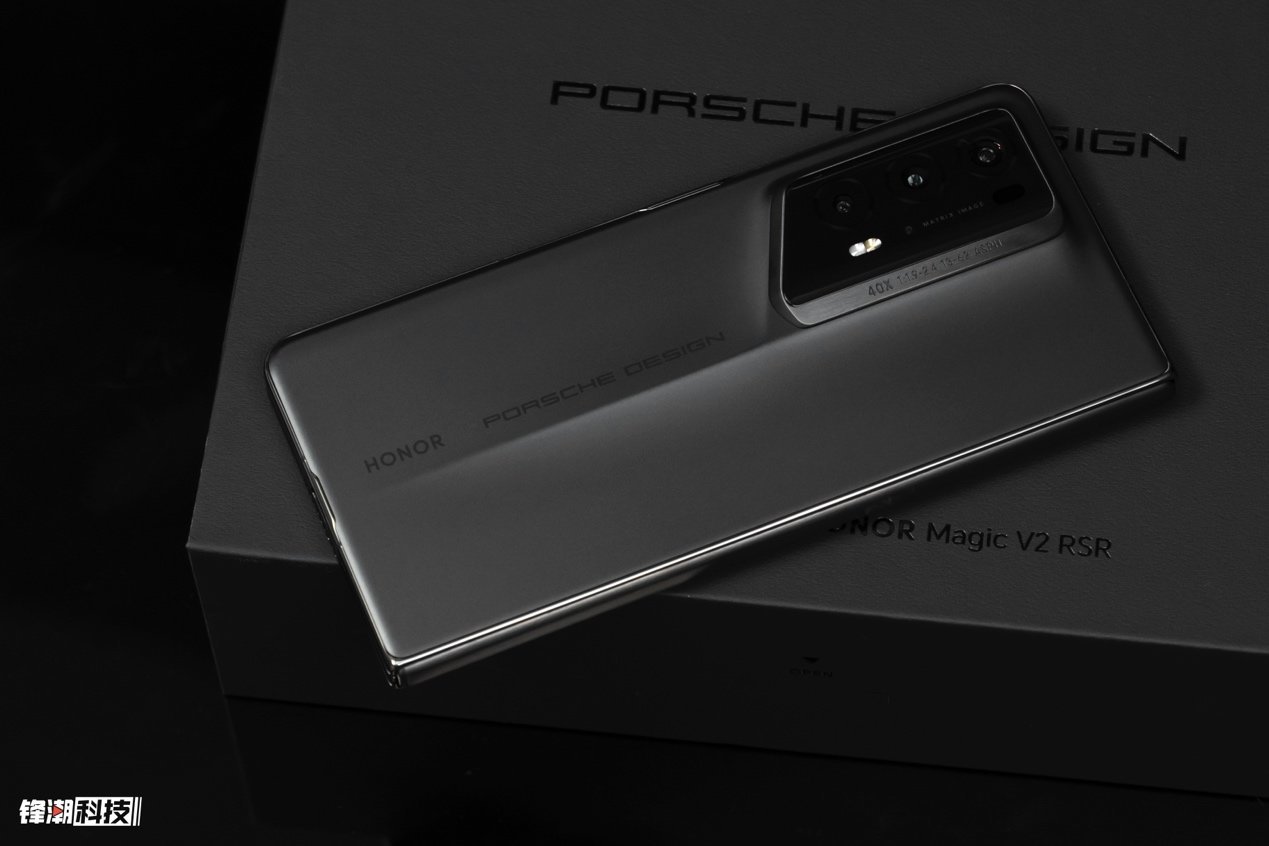 荣耀 Magic V2 RSR 采用了保时捷原厂的玛瑙灰作为主配色,在镜头 DECO 位置用上了飞线式的溜背悬窗设计,这也是保时捷设计最经典的设计,打破方圆的界限,给 DECO 带来独特的曲线之美。