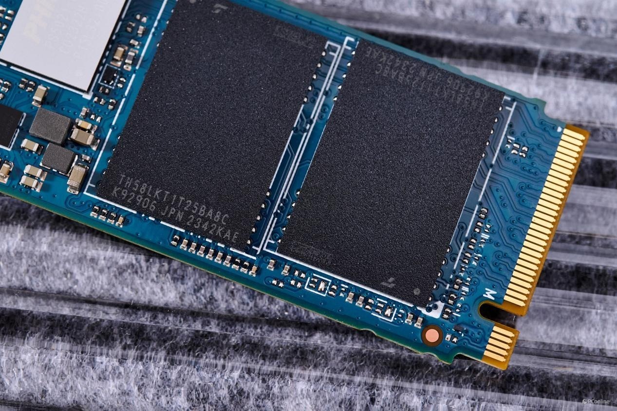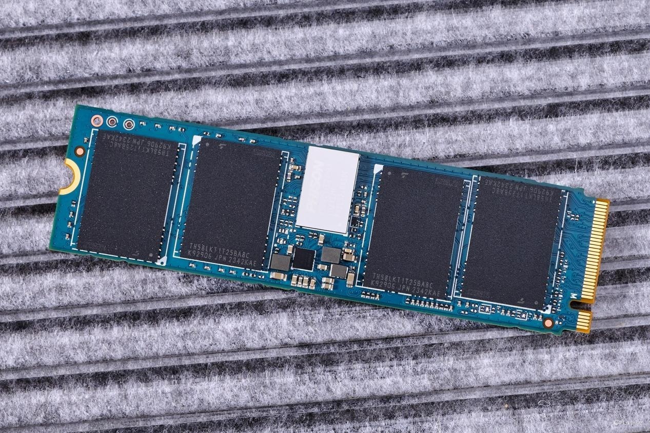 铠侠 EXCERIA PLUS极至光速G3 SD10固态硬盘系列提供了1TB和2TB的容量选择,而我们手上的这款是1TB的版本,所以在PCB基板上搭载了四枚型号为TH58LKT1T25BA8C的存储芯片,应用162层3D NAND堆叠技术,单颗容量达到256MB, 四枚组成1TB的规格容量。