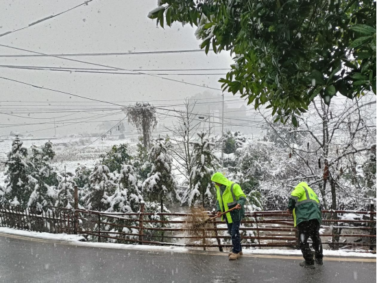 上栗县城市管理综合局积极组织全局工作人员清理街道、人行道等公共场所积雪,全力保障市民出行安全。