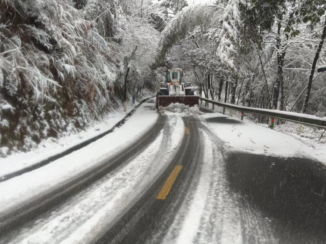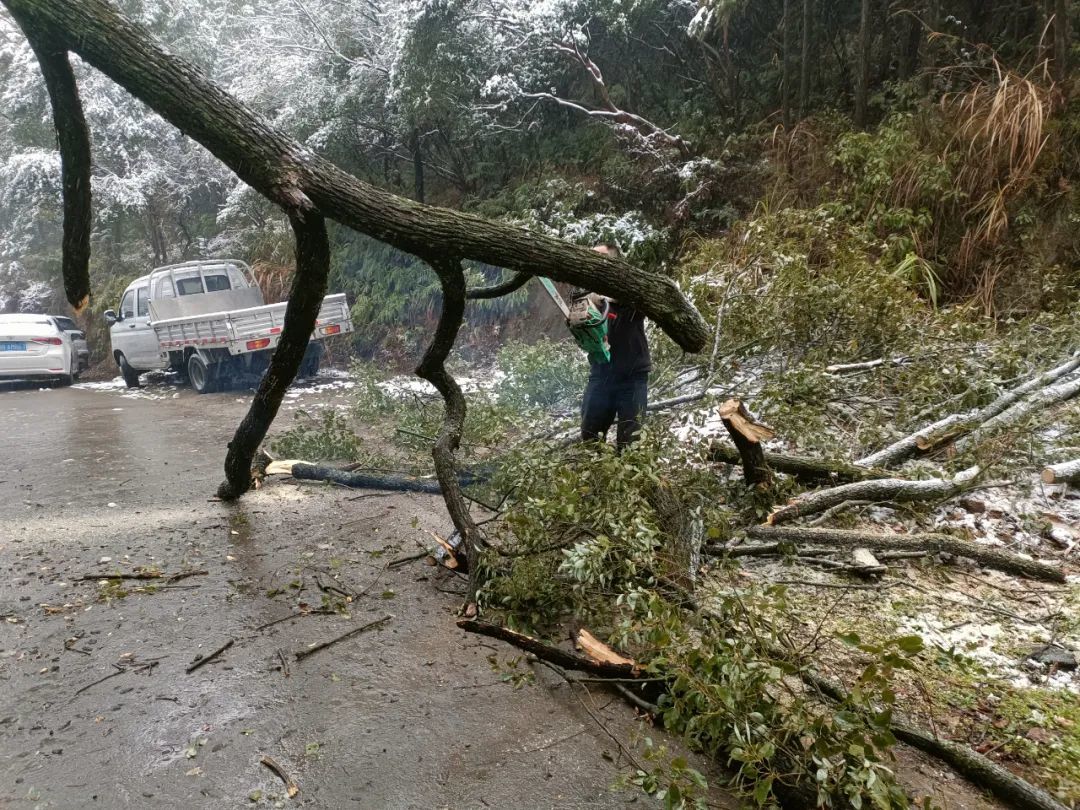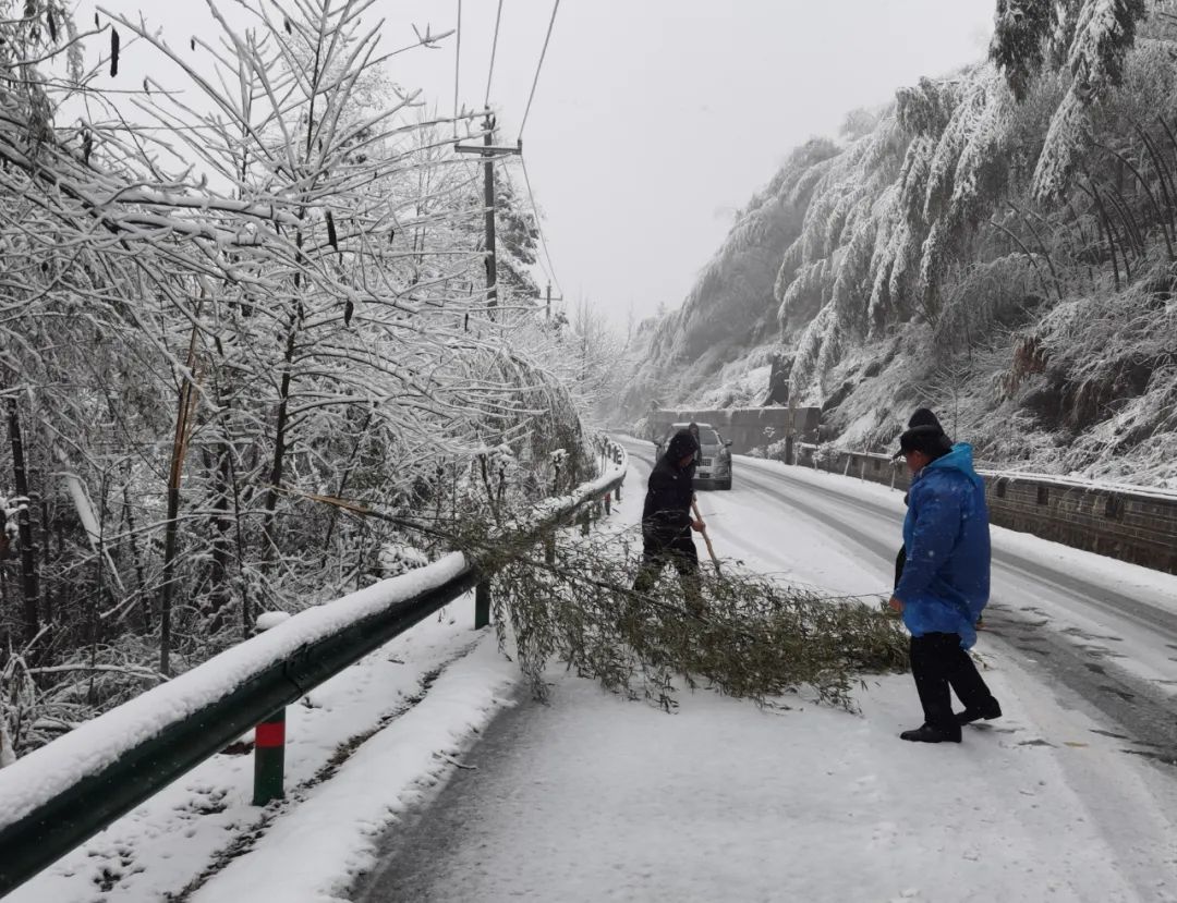 杨岐山景区管委会启动应急预案,组织干职工清理景区旅游公路积雪和倒木,保障景区道路畅通。
