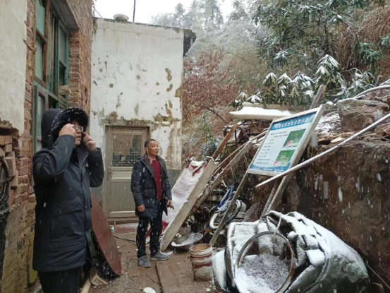 杨岐乡关下村驻村干部和群众一起进行除雪作业。