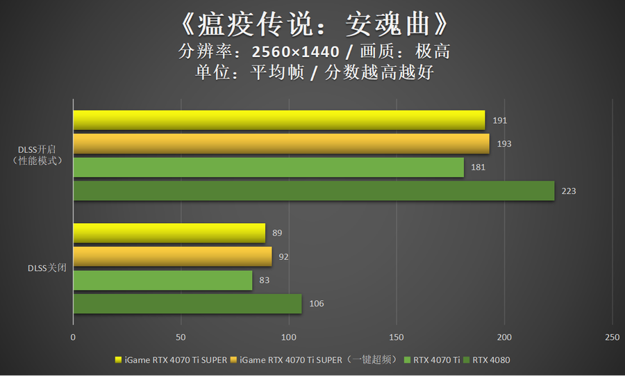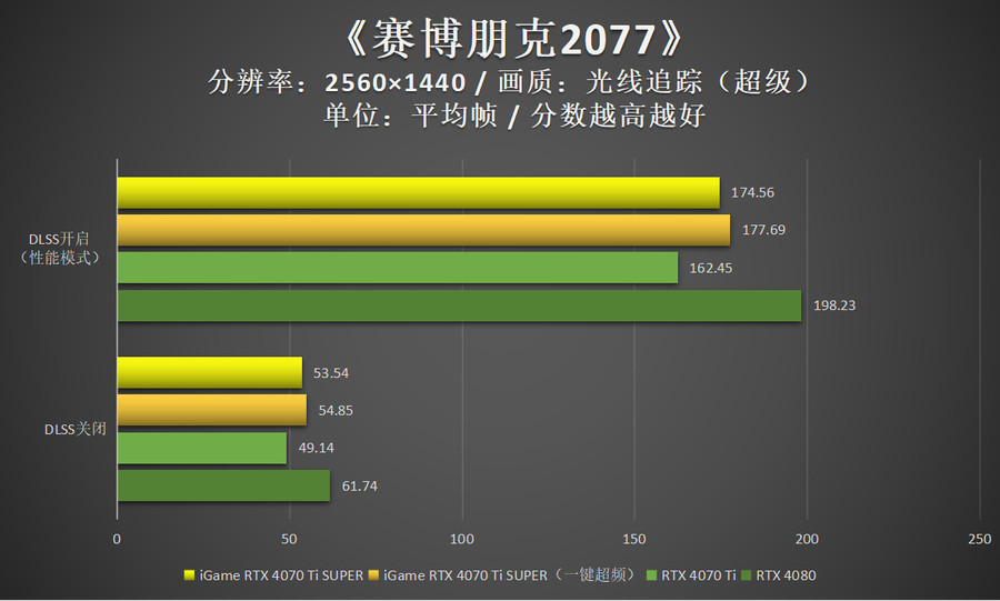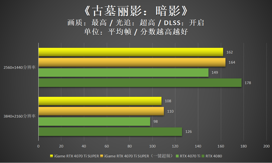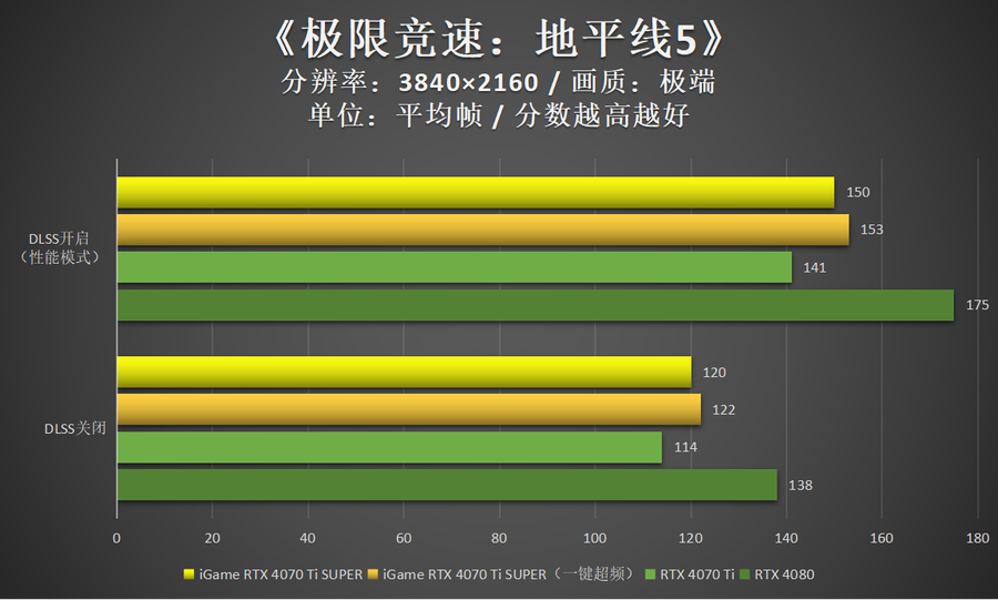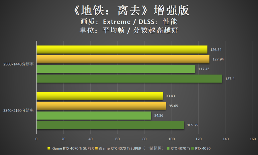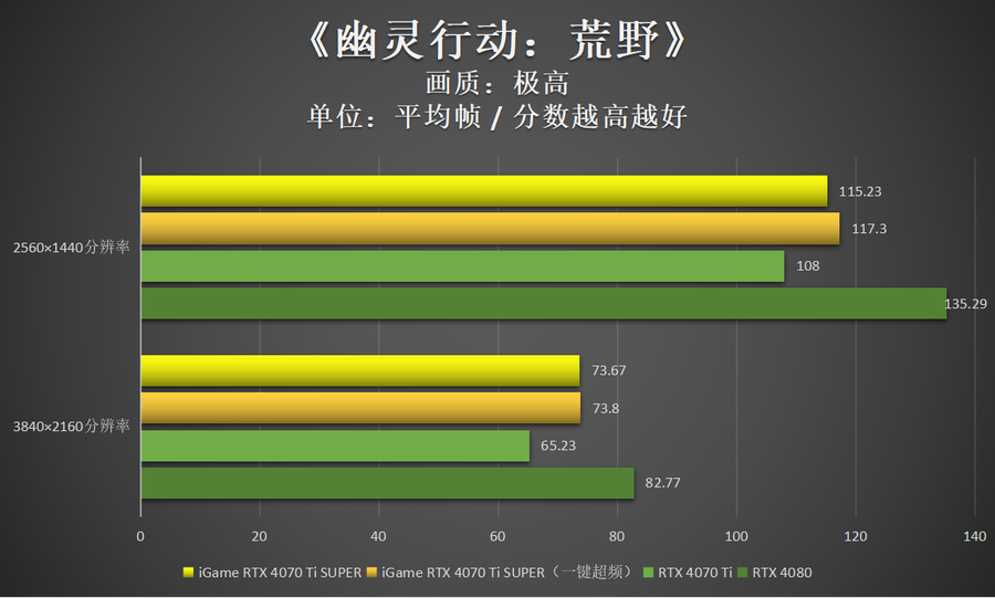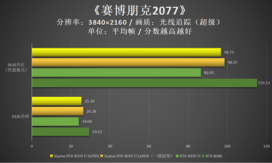非DLSS 3游戏中,iGame GeForce RTX 4070 Ti SUPER Neptune OC 16GB的性能表现依然很好,大部分游戏4K 100帧轻松实现。