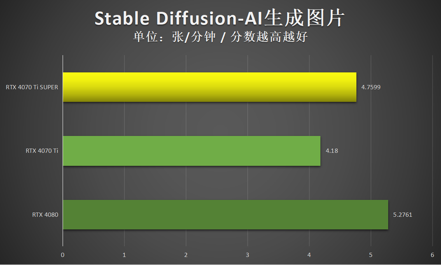 结果显示,iGame GeForce RTX 4070 Ti SUPER Neptune OC 16GB平均每分钟可生成4.7599张图片,AI绘图创作效率是比较高的,表现更加接近RTX 4080。