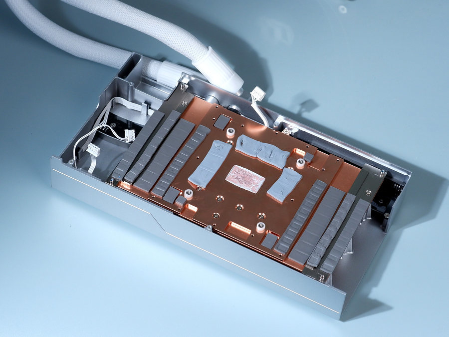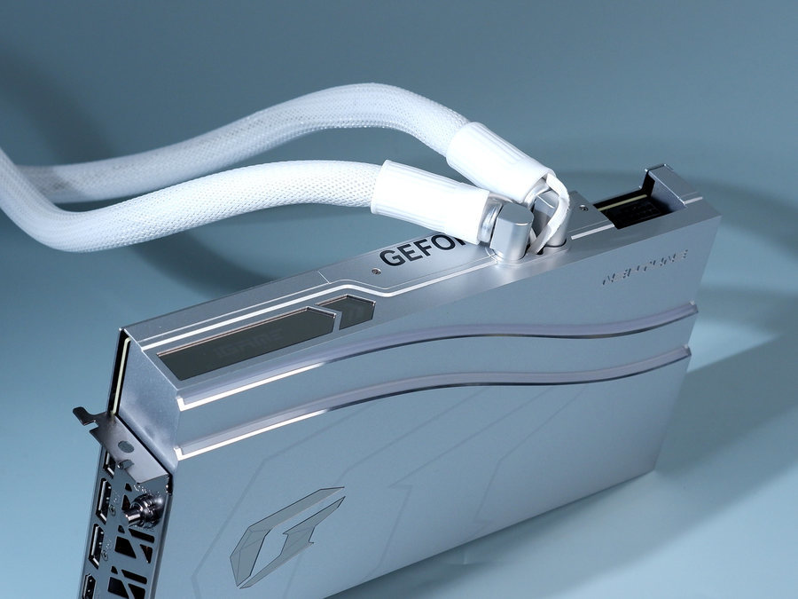 水冷管-水冷头的接头端采用了可旋转设计,能够让水冷管按需朝前或者朝后,进而让这款显卡的安装更加便捷。