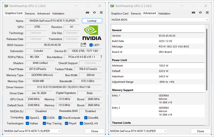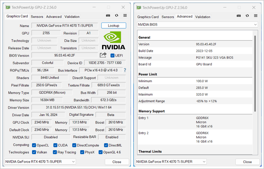 英特尔酷睿14代处理器搭配RTX 40系列显卡是支持Resizable BAR技术的。为了充分发挥比iGame GeForce RTX 4070 Ti SUPER Neptune OC 16GB的性能表现,以下测试环节均是在Resizable BAR开启状态下进行的。