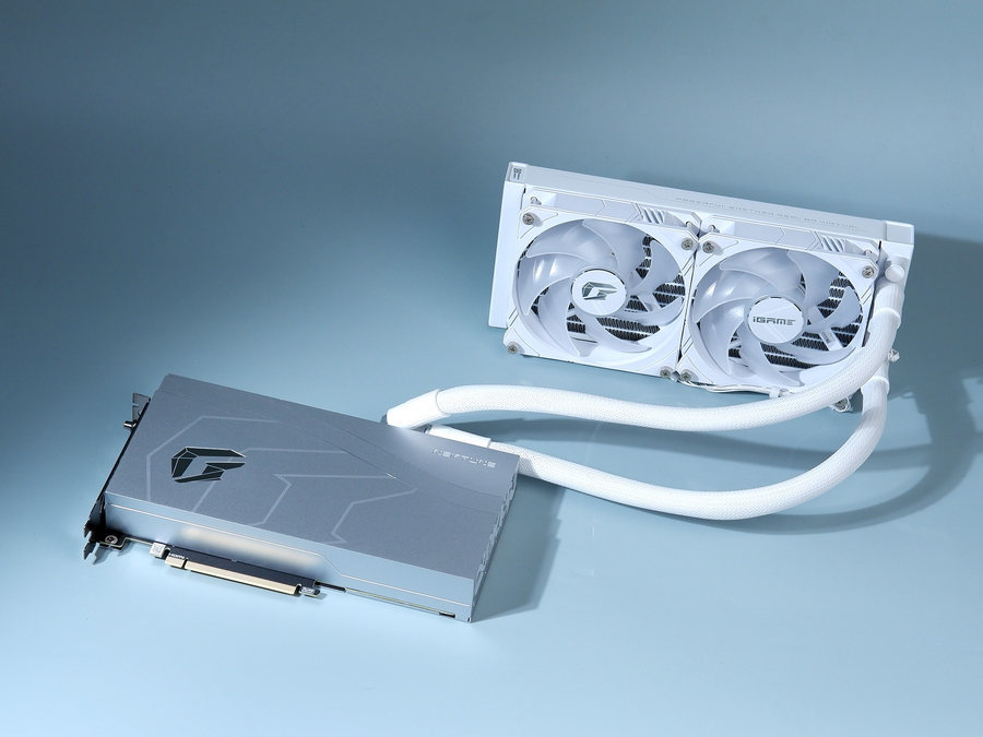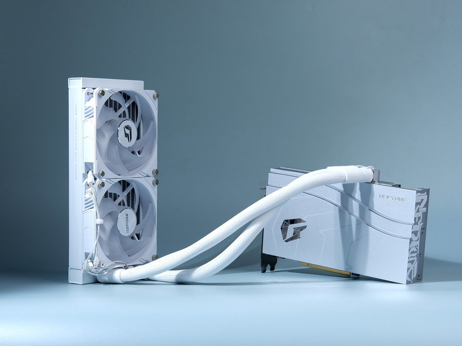 iGame GeForce RTX 4070 Ti SUPER Neptune OC 16GB采用一体式水冷设计,显卡整体采用银白配色,非常适合搭配白色机箱平台使用。