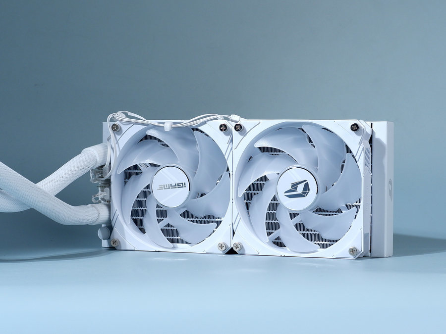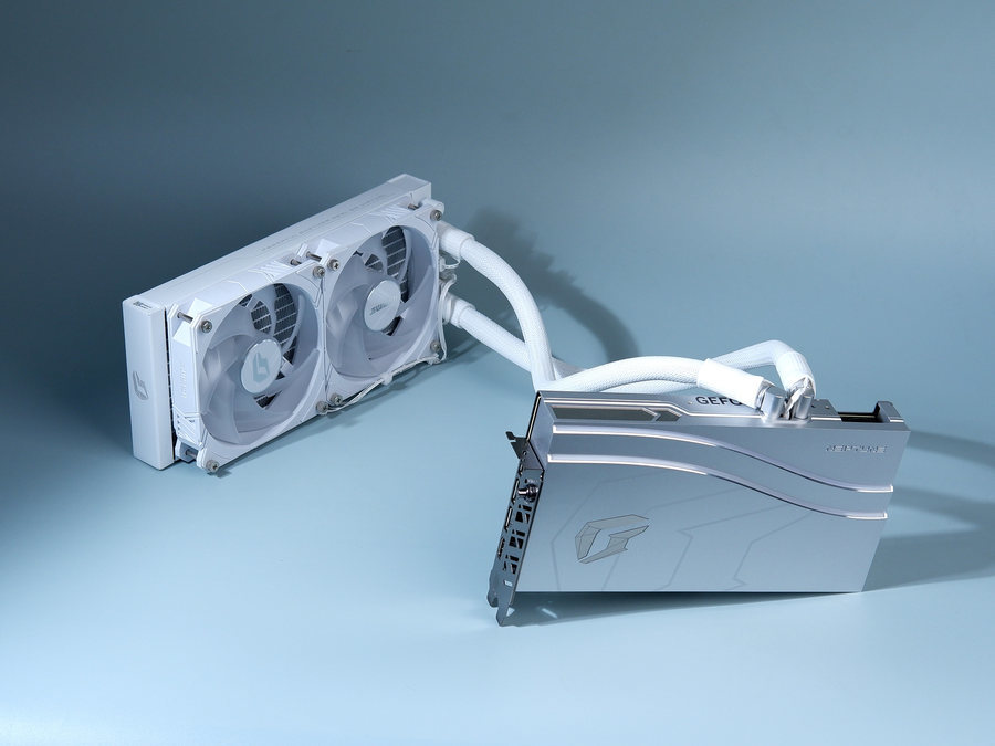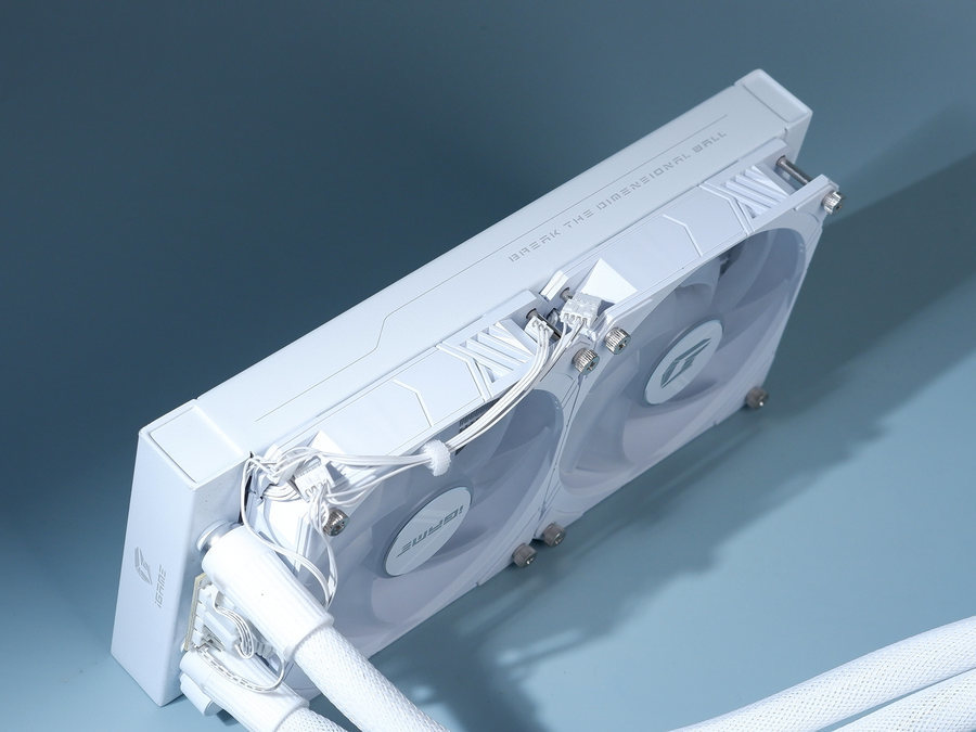 这款显卡采用了240双排水冷排设计,搭配有两枚12cm的RGB风扇。风扇可拆卸,DIY玩家可以更换自己喜欢的风扇样式,打造个性化的水冷PC。