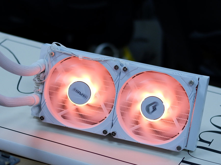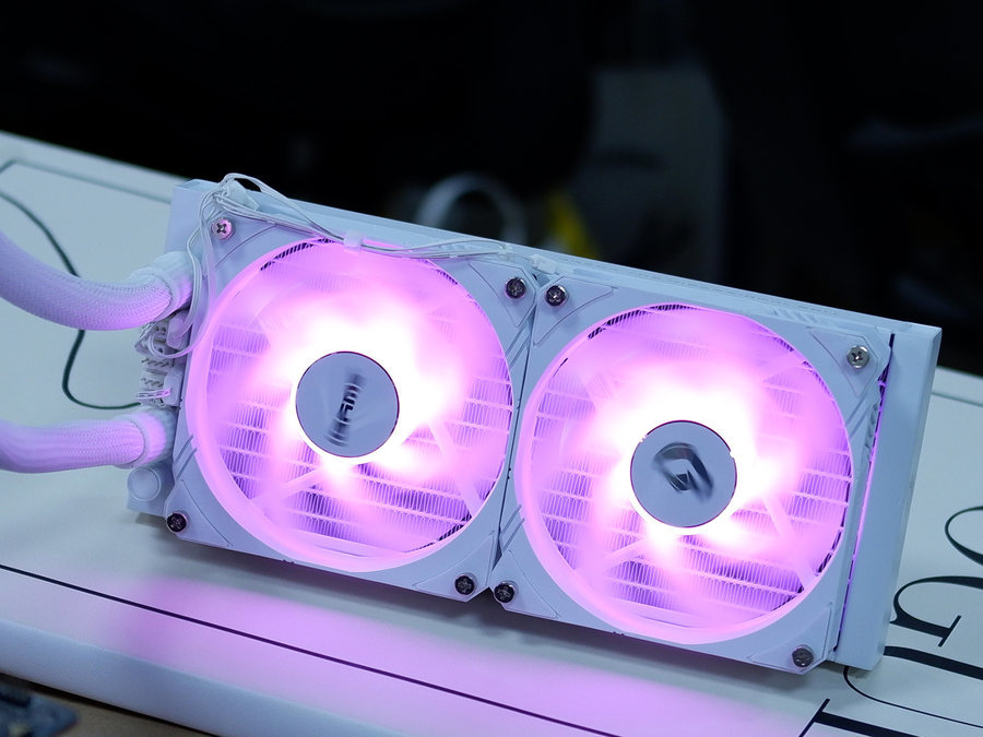 水冷排上面的双风扇RGB灯效。