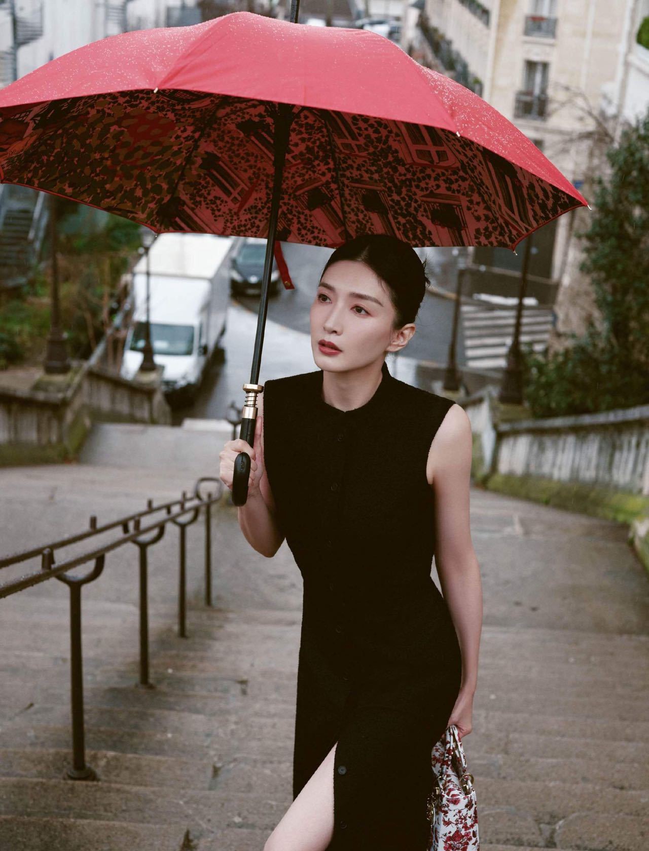 江疏影身着DIOR2024春夏高定,行走在巴黎街头