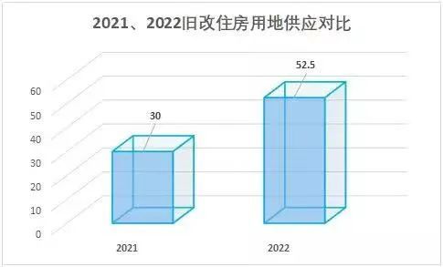 2022年旧改住房用地52.5公顷,比2021年增长了75%