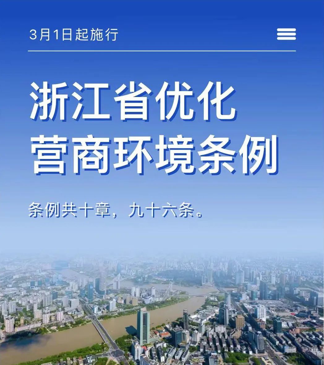 《浙江省优化营商环境条例》已于1月26日经省第十四届人民代表大会第二次会议高票通过,将于3月1日起施行。