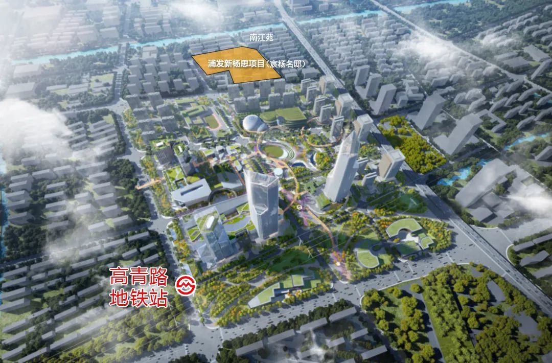 宸杨名邸北侧和东侧被老公房南江苑包围,西侧是规划中的住宅地块,项目距离6号线高青路站步行约1.2公里。
