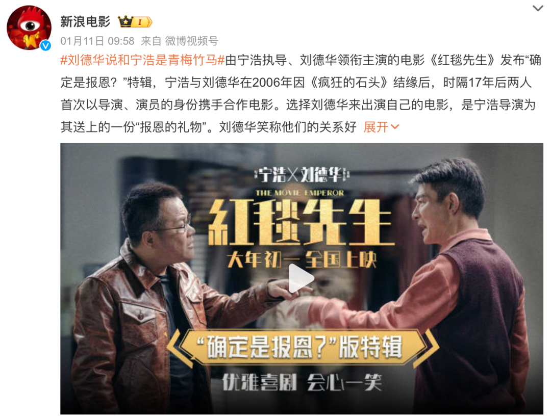 《红毯先生》定档大年初一,宁浩+刘德华。