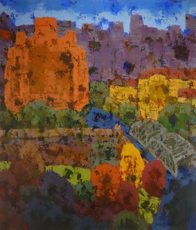 从百年的上海大厦到百年的外白渡桥,都是画家用厚重的色块堆砌而成,画面中的楼宇、大桥和苏州河两岸树林等等,在画家的笔下都显示出满满的童真和喜悦,非常具有艺术的张力,夏予冰的表现主义风格极具个性的笔法在上海独树一帜。他作品呈现的个性表现了他对颜色关系以及作品格调的准确把控能力。