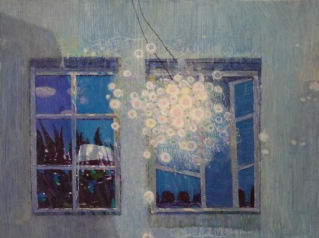 程俊杰的作品《遥远的翁弗勒尔》是画家对创作和绘画的一种新的探索和思考。他在画中重置了时间与空间的构成,想象中的画面和真实的画面交融交织,互为依托,有一种梦幻的抒情和一种温馨的宁静,很有难以言说的小资情调,这也是画家作品吸引人的地方。