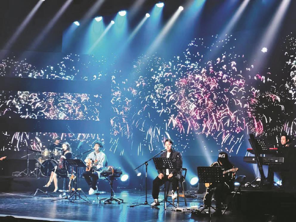 除去经典金曲,罗小罗还演唱了两支原创曲目。“我就像冬天的雪飘进春的衣裳,让我融化在她装满酒的心房。”《黔南姑娘》是他专门为黔南布依族苗族自治州作曲并演唱的文旅歌曲;《孤胆》则是罗小罗与演出键盘手李忠安共同创作的情歌。他一度对这些歌的受欢迎度不那么自信,但现场观众席上连片闪烁如星河的手机灯光给了他坚持原创最好的回应。“我想这些歌还是有受众的,所以我想先试着做线上演出,看看大家的接受度。这次把两首歌带到现场,观众反响不错,我会继续尝试。”