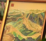 金雕画创始人、非遗技艺传承人何超老师就以长城为图景创作了一幅《万里长城·还看今朝》摆件,恢弘气势毫不逊色于长城图,却更为绚丽、精致。
