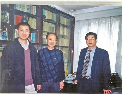 汪曾祺已去世十年,与龙冬(左一)和汪朗摄于汪先生曾经的书房