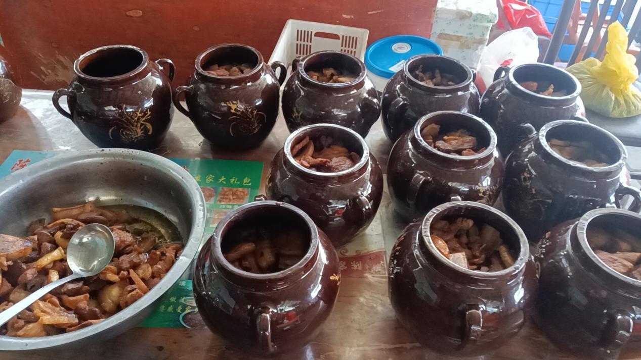 “这种闷罐肉净重6.5公斤,在阴凉处保存两三年都不会坏。现在除了省内的客户外,广州、深圳也有人从网上买我们的闷罐肉,目前售价500元一罐。担心下大雪山里路不通,我今年还在平顶山老城区那边设置了一个提货点,今年预计能销售1000多罐呢。”陈新库说。