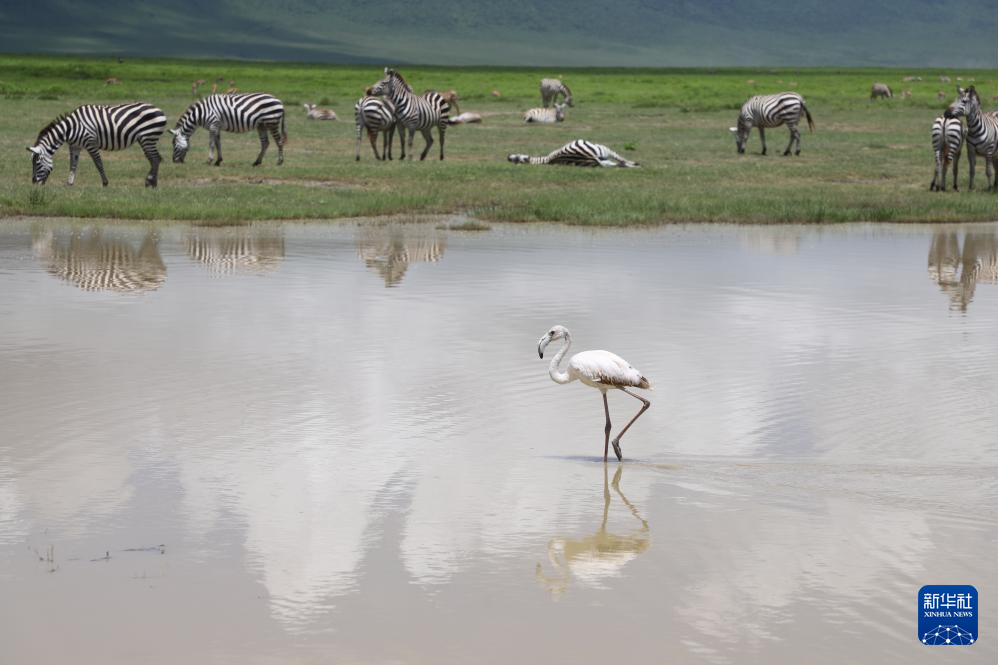 这是1月29日在坦桑尼亚恩戈罗恩戈罗自然保护区拍摄的火烈鸟。