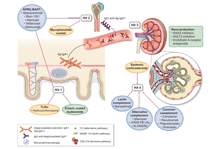 更精细、毒性更小的免疫疗法正在给IgA肾友们带来新的希望,其中靶向肠道黏膜B细胞免疫、BAFF和APRIL、补体途径3大方向尤其具有前景。