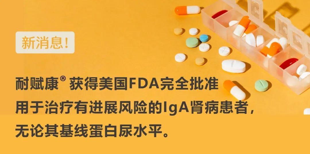 FDA目前已批准无论基线蛋白尿水平是多少的IgA肾病,都可以用耐赋康®。