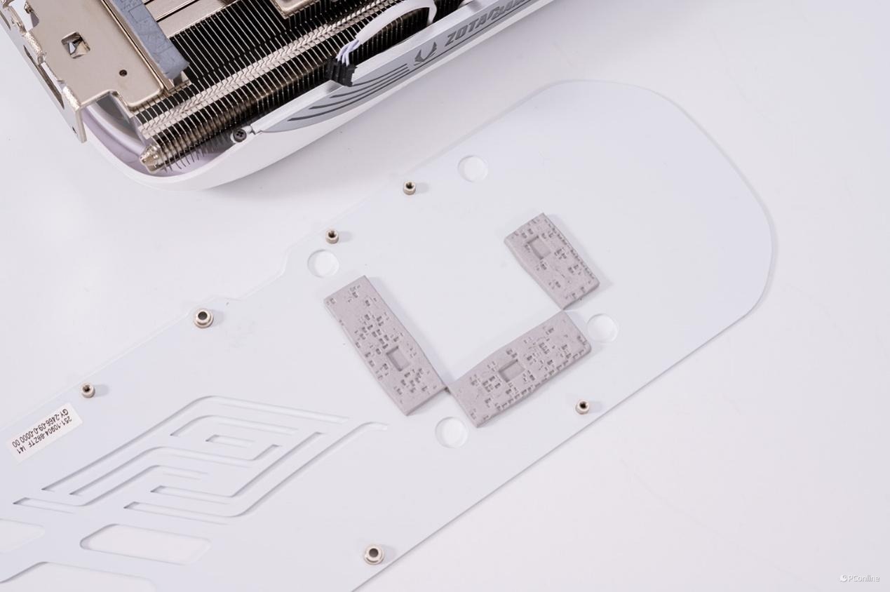 除此之外,金属背板的显存和GPU核心位置依然贴了导热垫,可以从背板处导热,妥妥的旗舰级配置散热。