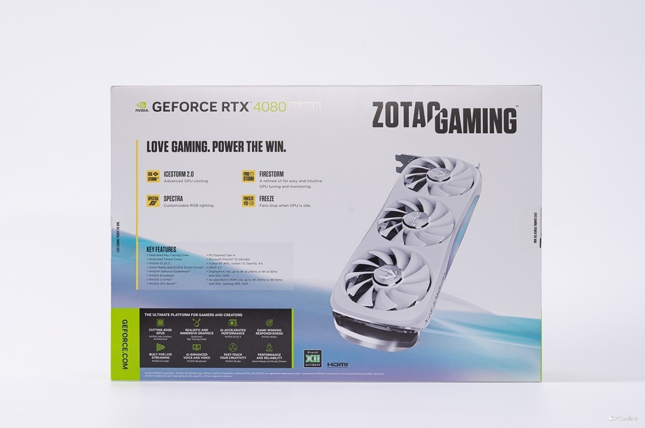 索泰作为NVIDIA之中的一线AIC品牌,也对产品线进行了更新,带来了搭载新款GPU的新产品。我们这次上手的就是索泰GeForce RTX 4080 SUPER-16GB TRINITY OC月白显卡,雪白战衣加身,流线造型吸睛,每一处都透露出它的不一般,下面就随我们的视角一起看看它的表现够不够“SUPER”吧。下文“索泰GeForce RTX 4080 SUPER-16GB TRINITY OC月白”简称为“索泰RTX 4080 SUPER TRINITY OC月白”