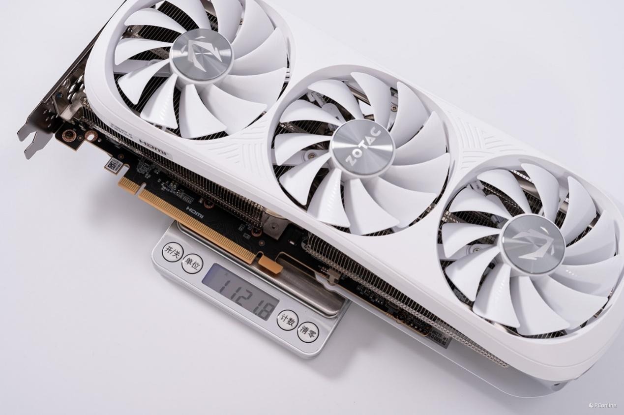 重量也是相当轻,比起别的显卡动辄四五斤起步,索泰RTX 4080 SUPER TRINITY OC月白仅有1.1kg,小巧精致。